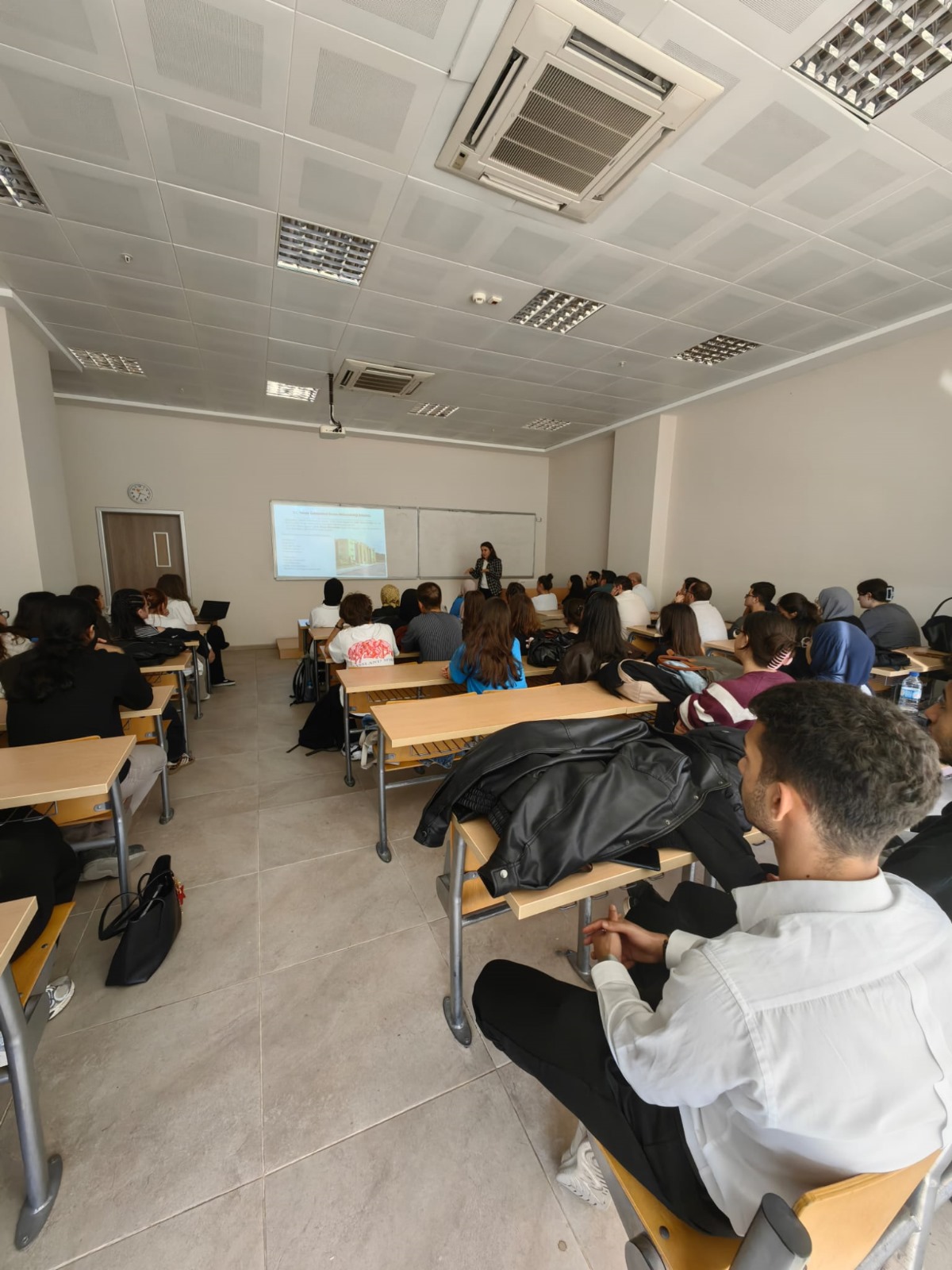 The event began with a welcome presentation by the Vice Chair of the Department, Assoc. Prof. Dr. H. Hande Mert, who provided an overview of the department. The presentation covered the undergraduate curriculum, regulations on academic performance and examinations, course structure, internship opportunities, graduation project, ongoing research activities, and available laboratory facilities.